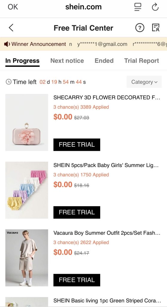You’re not limited to clothing. Shein’s testing program includes a variety of categories like: